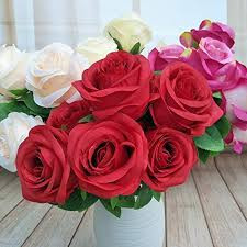 رز شاخه ای مصنوعی رنگ قرمز روشن کد 12