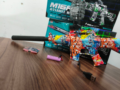 تفنگتیر ژله ای شارژی M16 تیر ژله ایی 6GB همراه شلیک شارژی صدا خفه کن امکان تغییر به تک تیر و دارای گلنگدن و رگباری ) کد 556 فقط تا 10 آذر پنجاه 50 درصد تخفیف ویژه
