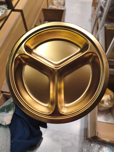 بشقاب سه خونه مزه خوری و خوراک اصل استیل طلایی کیفیت بسیار بالا ضد حساسیت ضد بو و مقاوم در برابر حرارت پنجاه درصد تخفیف تا ۱۰ آذر