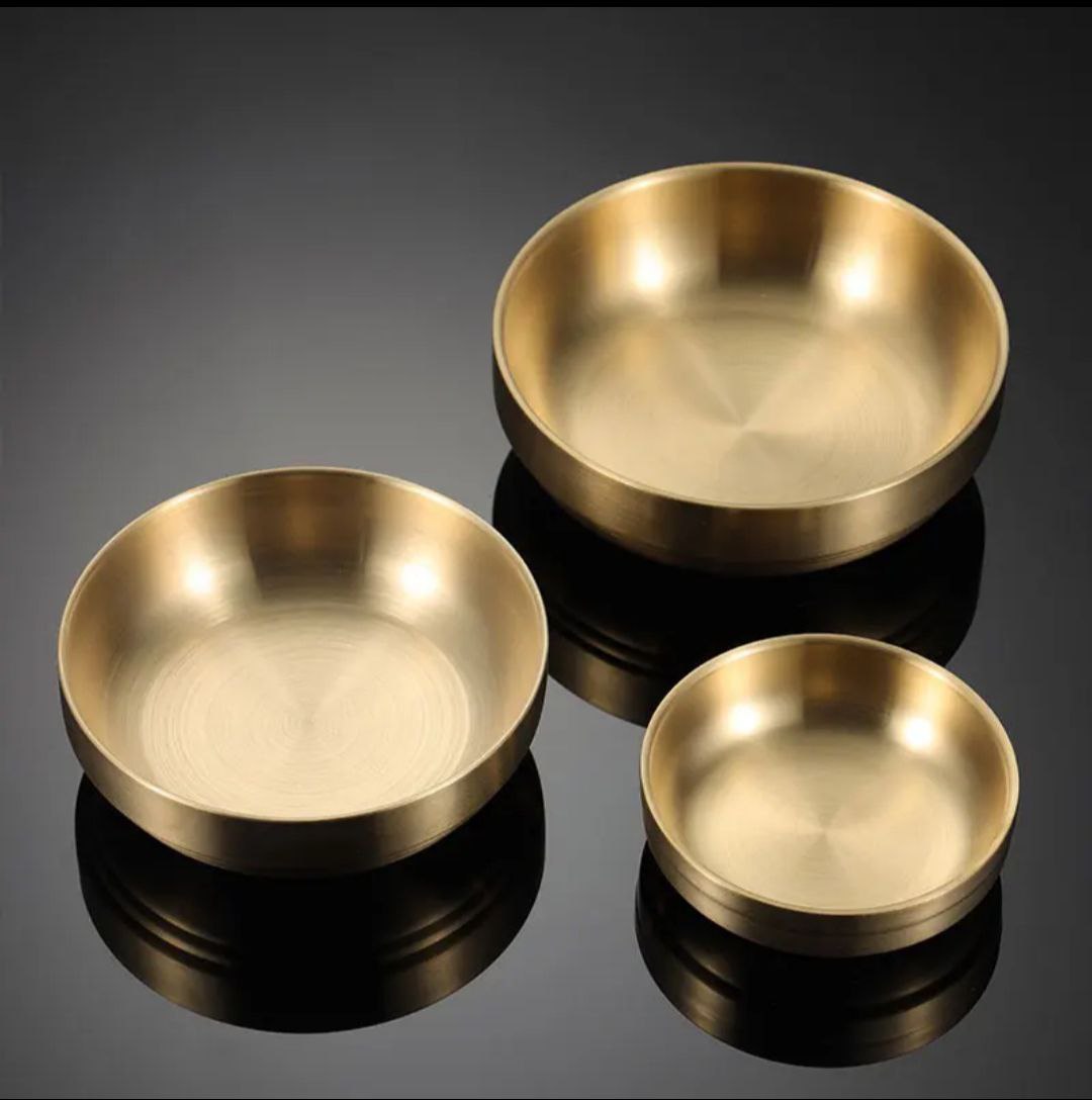 ظروف استیل طلایی یونیک پلاس ( بشقاب پیش دستی از سایز ۱۴ الی ۳۳ سانتی متر کیفیت بالا استیل ضد زنگ ضد حساسیت و بو ) کد 752