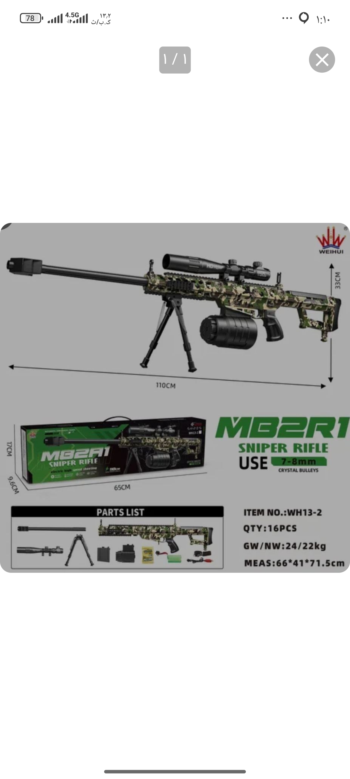 تفنگ اسنایپر110 سانتی متری رگباری تیر ژله ای دوربین دار بزرگ اورجینال اصلی شرکت wHw ضمانت اصالت و کیفیت قدرت بالای پرتاب دوربین X60 با وضوح 264086 ارسال فوری و رایگان کیفیت عالی جشنواره تا آبان مهر