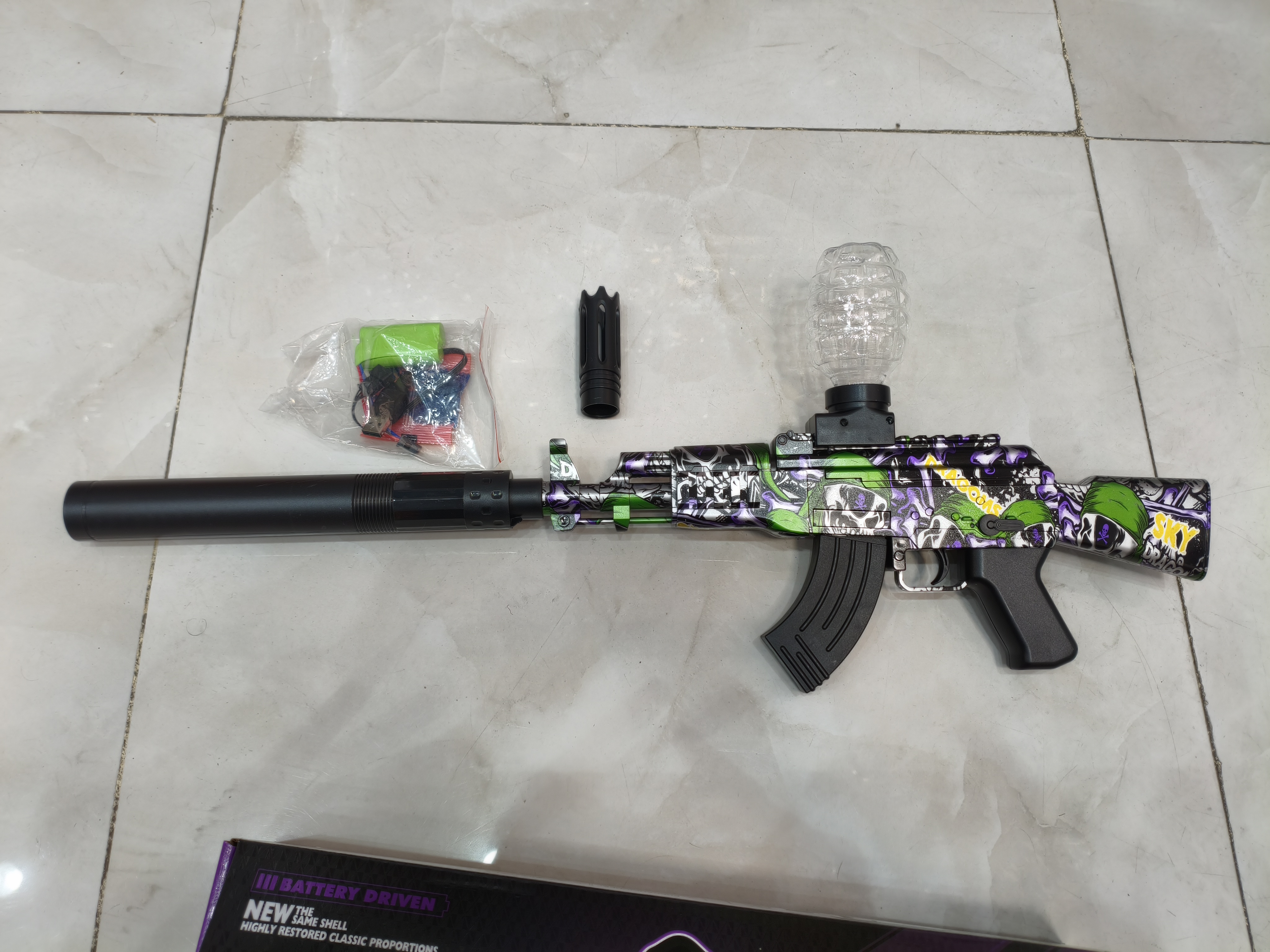 تفنگ تیر ژله ای چند کاره بزرگ AK47 بزرگ تیربا 5 هزار تیر اضافه ارسال فوری پنجاه درصد تخفیف فقط تا 10 آذر
