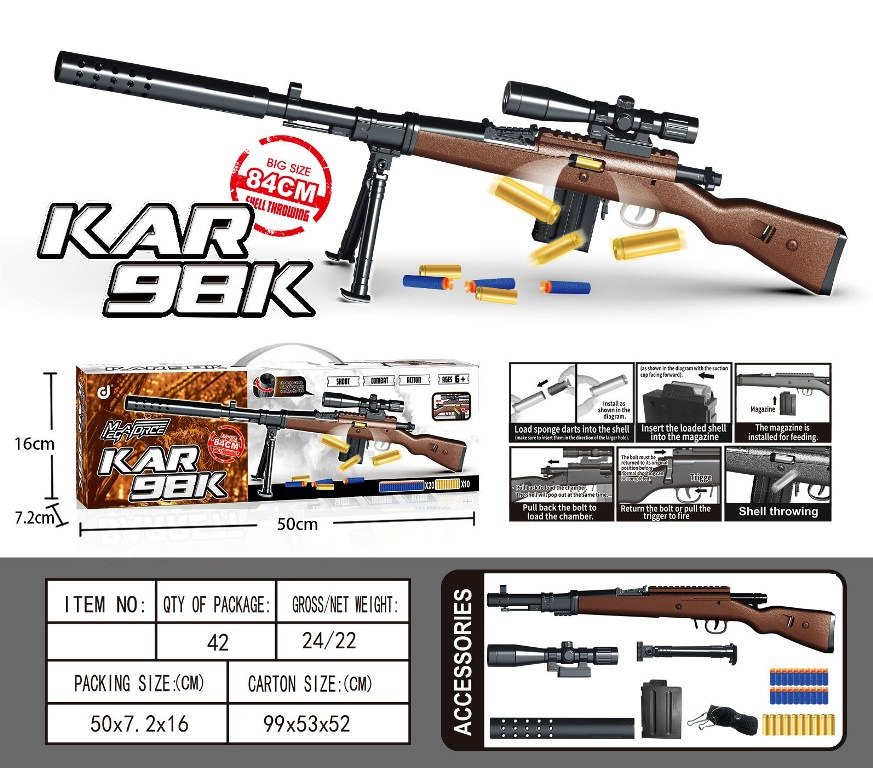 تفنگ تیر ژله ای دوربین دار اسنایپر 90 سانتی متری دوربین دار رگباری تیر ژله ای رگباری شارژی کیفیت بالا 98kR, بدنه مقاوم کیفیت عالی ارسال فوری 50 درصد تخفیف فقط فقط تا 9 آذر