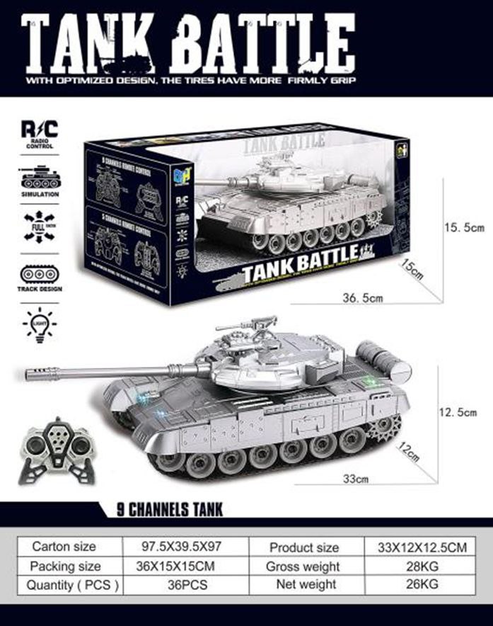 تانک کنترلی ۹ کانال شارژی چرخ دنده دار چرخش لوله به 360 درجه کیفیت بسیار بالا تانک بزرگ و سرعت بالا چراغدار عالی بدنه مقاوم لوله تانک چرخش تا 360 درجه حرکت به همه جهات کنترل بسیار با کیفیت فروش ویژه در جشنواره تا 10 آذر پنجاه درصد تخفیف