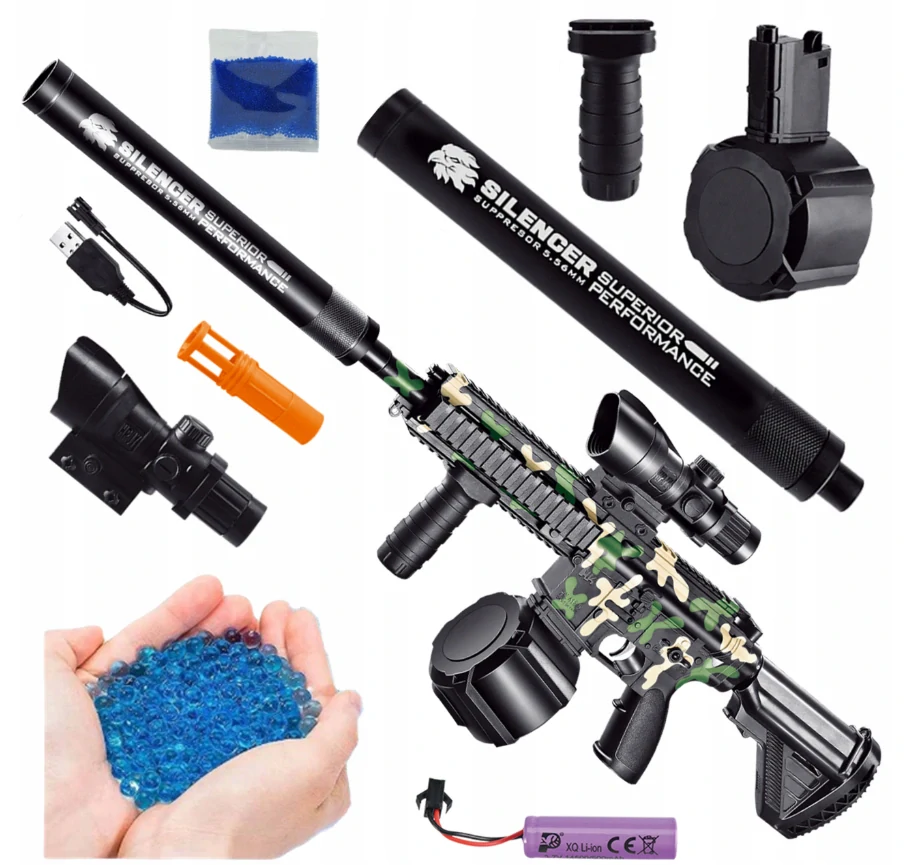 تفنگ تیر ژله ای تیر بار مسلسل تیر ژله ای رگباری M1 pro رگباری شارژی G36 گنداق تاشو موتور پر قدرت شصت درصد تخفیف فقط تا 10 آذر همراه پنج هزار تیر هدیه