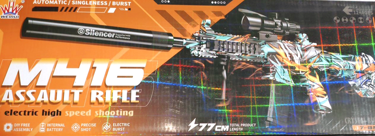 تفنگتیر ژله ای شارژی M16 تیر ژله ایی 6GB همراه شلیک شارژی صدا خفه کن امکان تغییر به تک تیر و دارای گلنگدن و رگباری ) کد 556 فقط تا 30بهمن پنجاه 50 درصد تخفیف ویژه