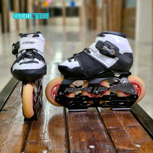 اسکیت سرعتی پاوراسلاید CORE سایز ۳۳/۳۶، بوت کربنی، فریم آلومینیوم ۷۰۰۰، چرخهای ۹۰ میلیمتری، بدون ترمز، مناسب نونهالان و نوجوانان حرفهای. این اسکیت کارکرده است.