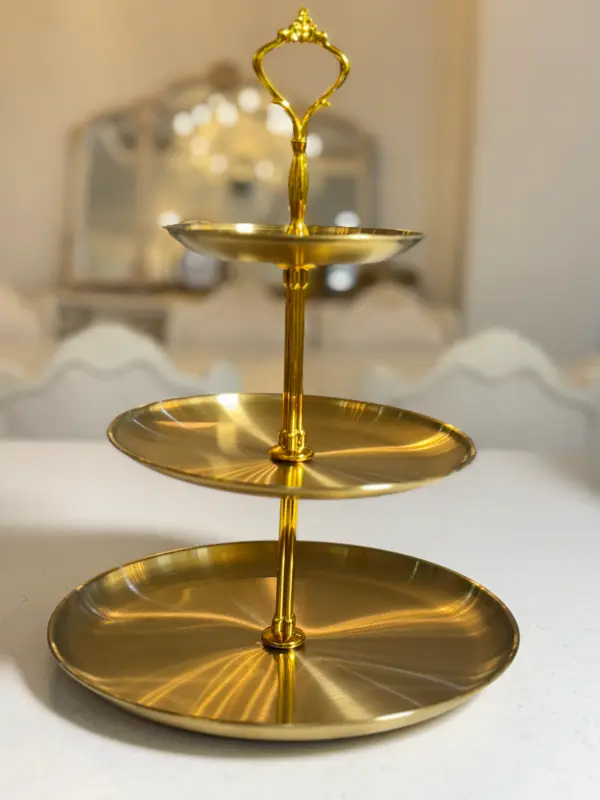 شیرینی خوری دوطبقه ،سه طبقه استیل طلایی خالص 304 ضد حساسیت و ضد زنگ مناسب پذیرایی ساخت آلمان باکد 1205