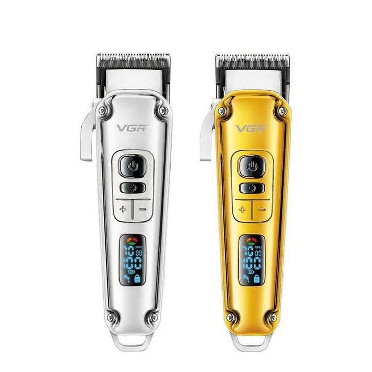 ماشین اصلاح VGR 006 جنس تیغه استیل ضد زنگ باتری لیتیوم۲۶۰۰ تکنولوژی اصلاح برش مستقیم بدنه تمام فلز دارای موتور ۷۰۰۰ دارای توربو نمایشگر شارژ کیفیت تضمینی