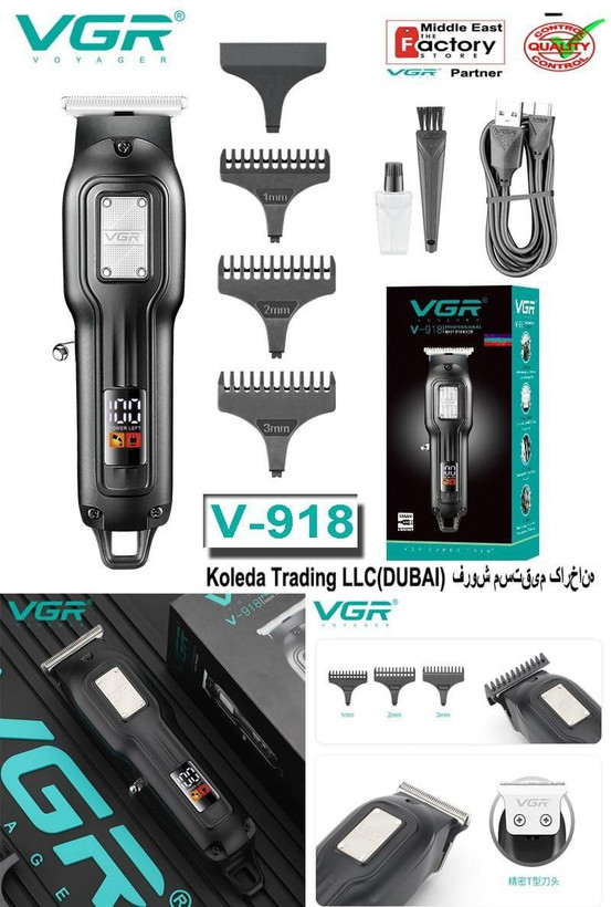 خط زن VGR 918 دارای نماشگر شارژ جنس تیغه استیل مدت زمان استفاده 100 دقیقه باتری لیتیومی