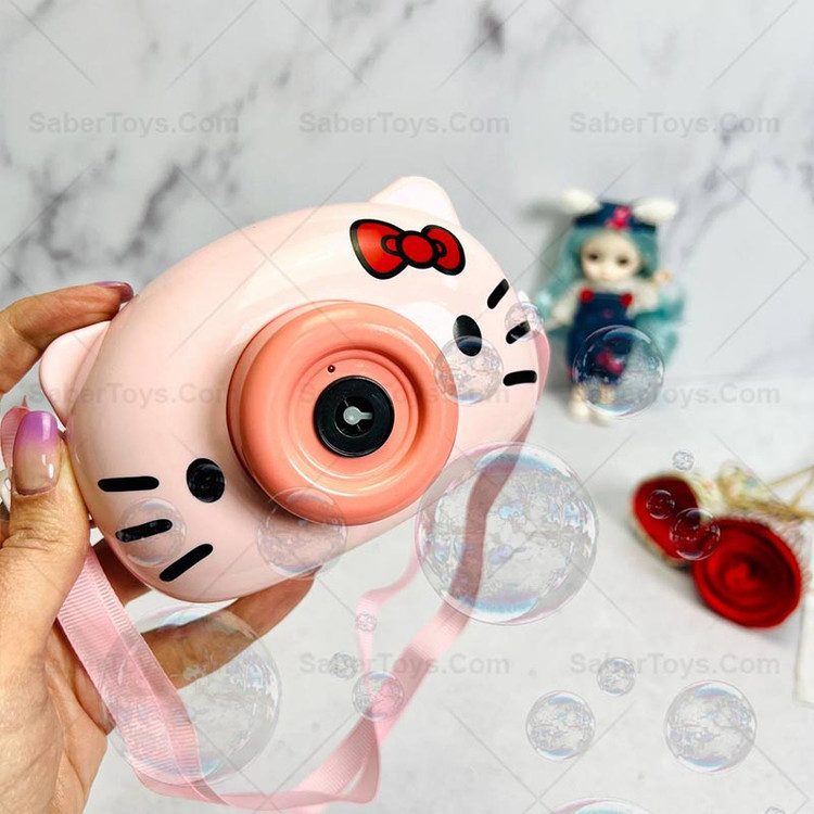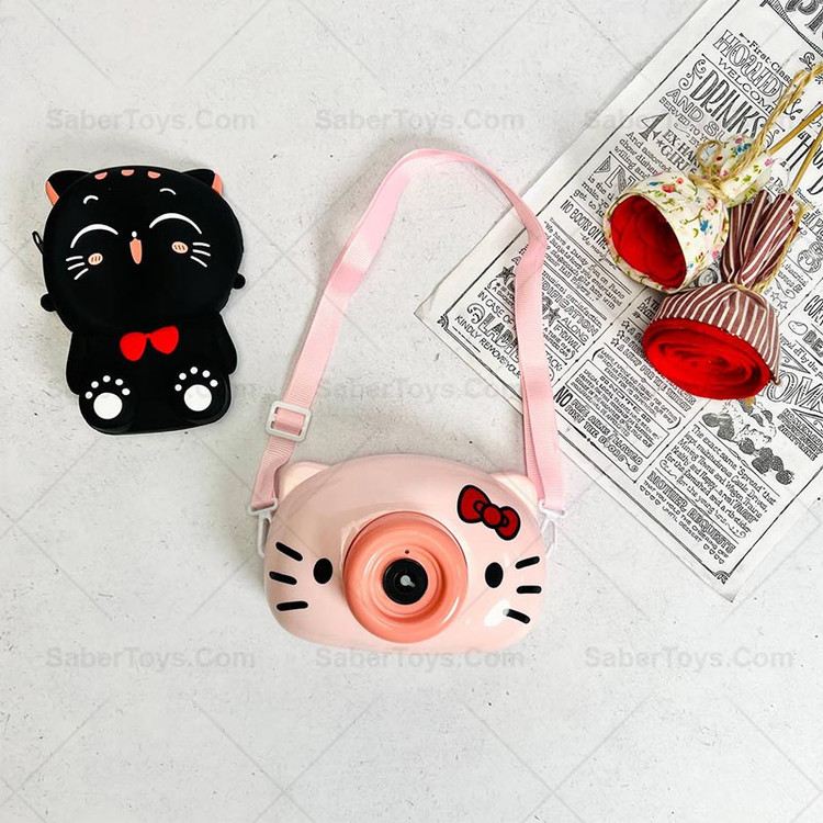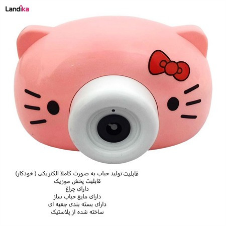 دوربین حباب ساز موزیکال باتری ای طرح گربه صورتی با مایع داخل و اورجینال ارسال فوری