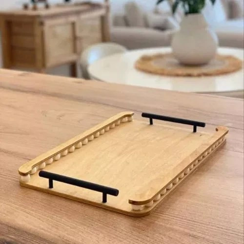 سینی مستیطل چوبی دسته فلزی مهره دار چوب روسی کیفیت بالا دور مرواریدار اصلی چوب خالص ارسال فوری