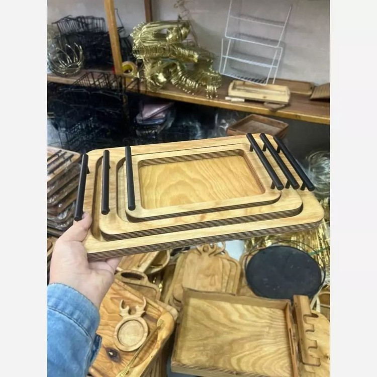 سینی چوبی دو تیکه 3 تیکه دسته فلزی و چوبی ارسال فوری کیفیت عالی ارسال فوری گد 1301