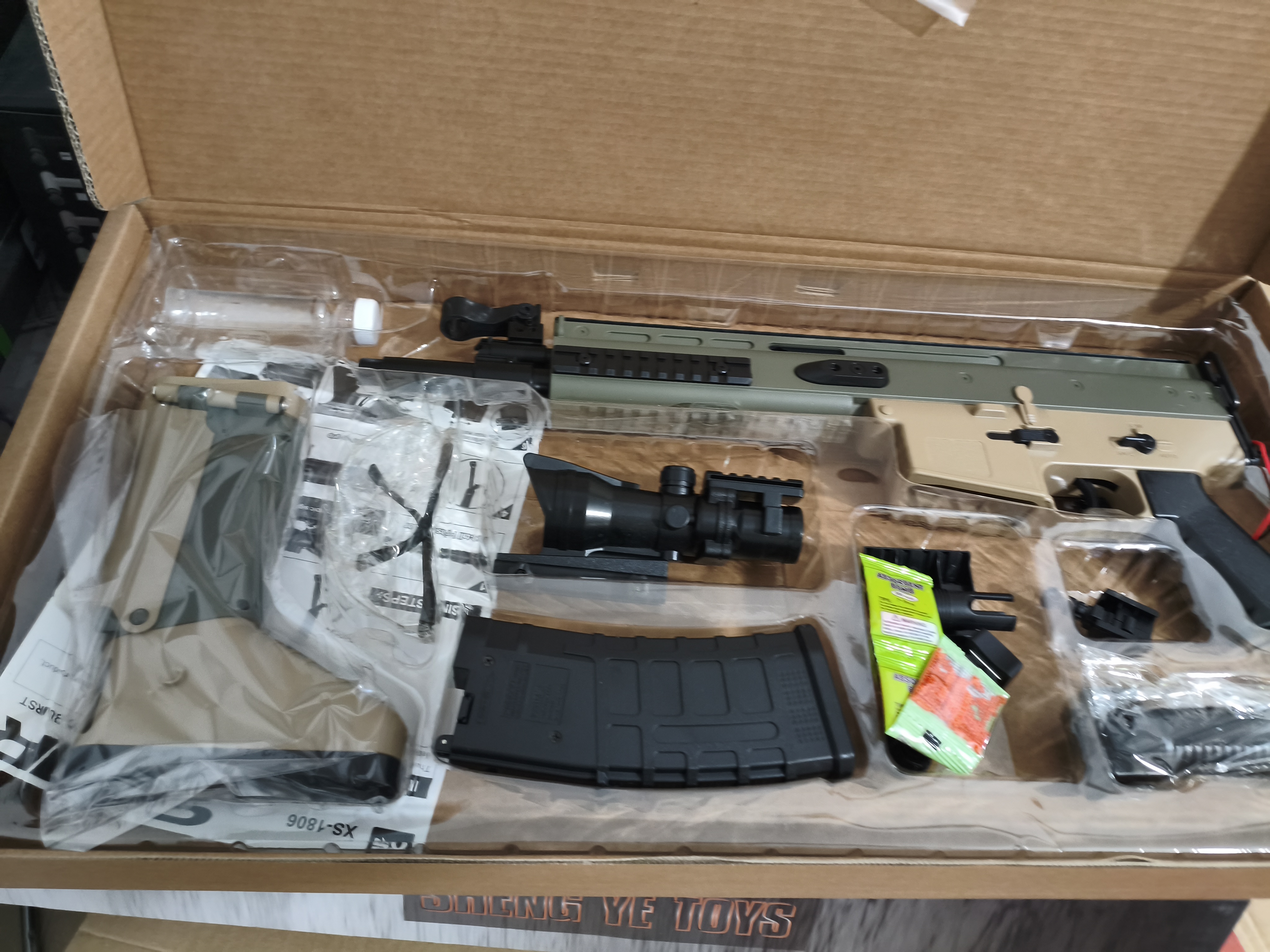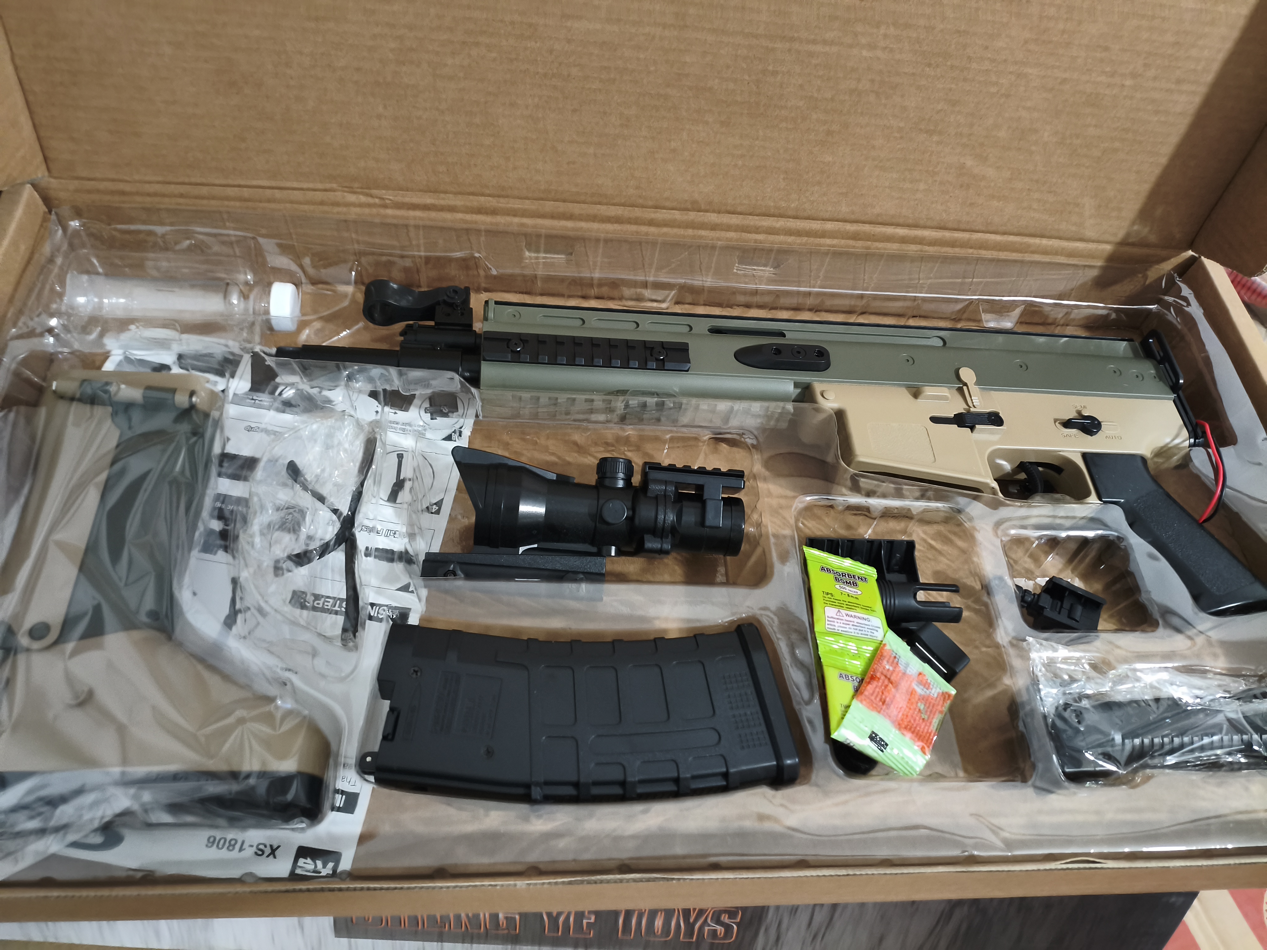 تفنگ تیر ژله ای Scar رگباری فول آپشن کیفیت بالا بدنه ضد ضربه ضد آب و مقاوم در برابر حرارت شلیک با توان Sbs استاندارد اروپا دوربین دار اصلی ارسال فوری