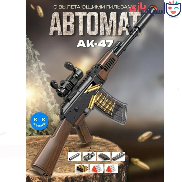 تفنگ Ak47 کلاشینکف پوکه پران 91 سانتی متری اسکین طلایی نایاب و مدل خاص تیر ابری پوکه پران بزرگ و دوربین دار ارسال فوری