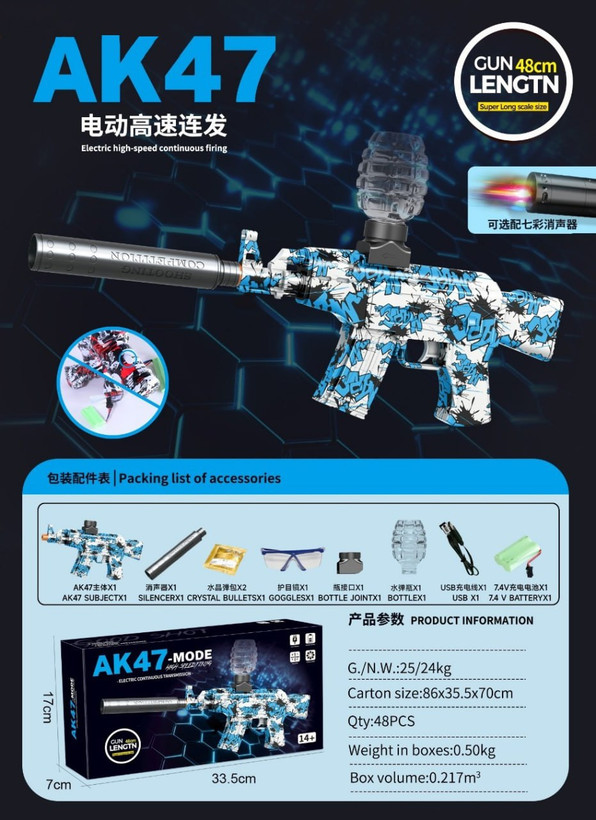 تفنگ تیر ژله ای رگباری شارژی Ak47 کلاشینکف رگباری کیفیت بالا ا 2025 ارسال فوری