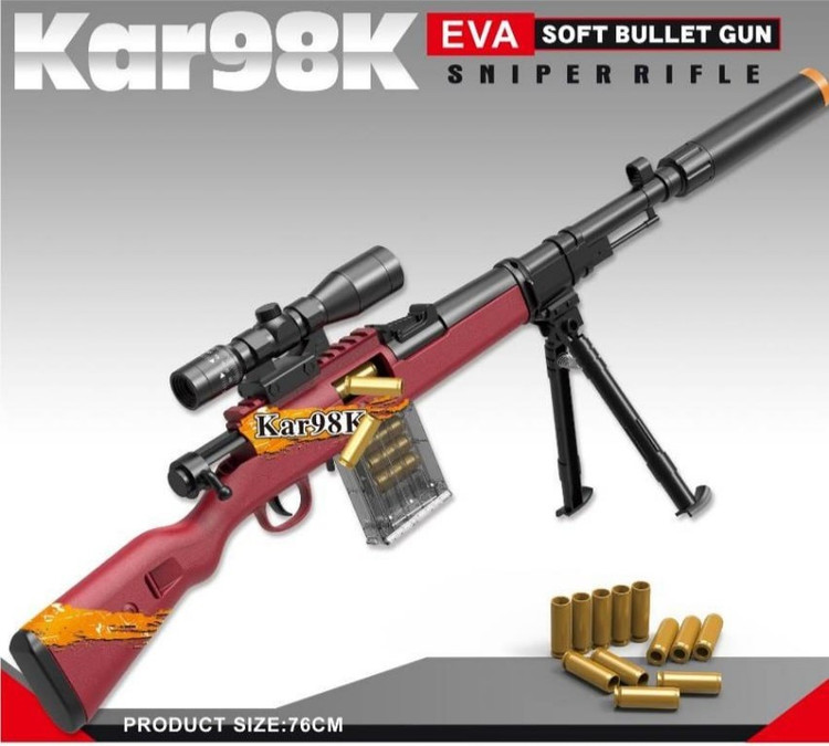 تفنگ اسنایپر تک تیر انداز پوکه پران 80 سانتی متری مدل جنگ جهانی ارتش آلمان Kar98 کیفیت بالا پوکه پران تیر ابری ارسال فوری پنجاه درصد تخفیف فقط تا ۳۹ آبان