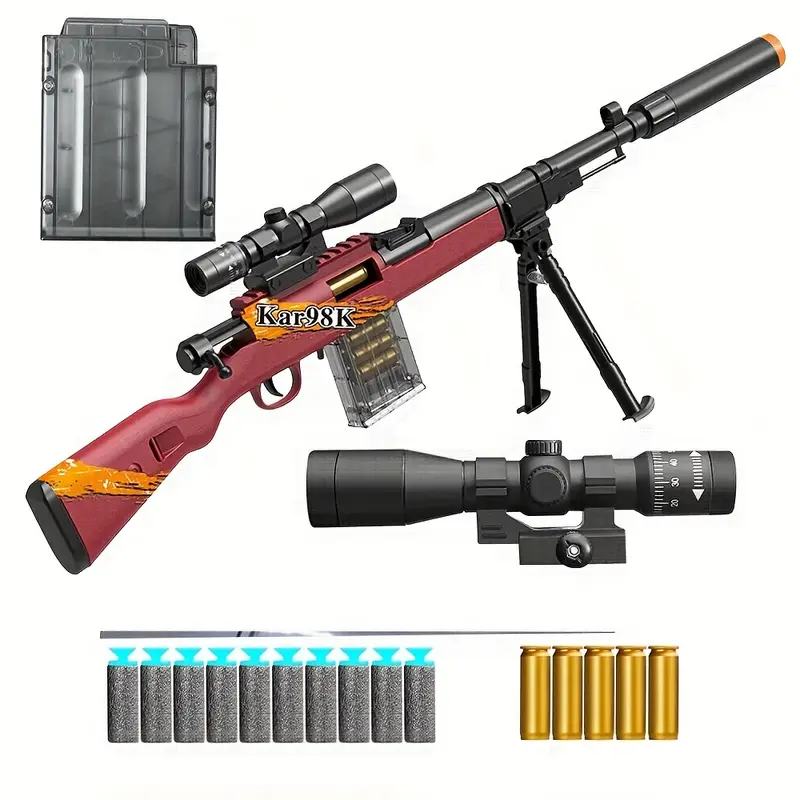 تفنگ اسنایپر تک تیر انداز پوکه پران 80 سانتی متری مدل جنگ جهانی ارتش آلمان Kar98 کیفیت بالا پوکه پران تیر ابری ارسال فوری پنجاه درصد تخفیف فقط تا ۳۹ آبان
