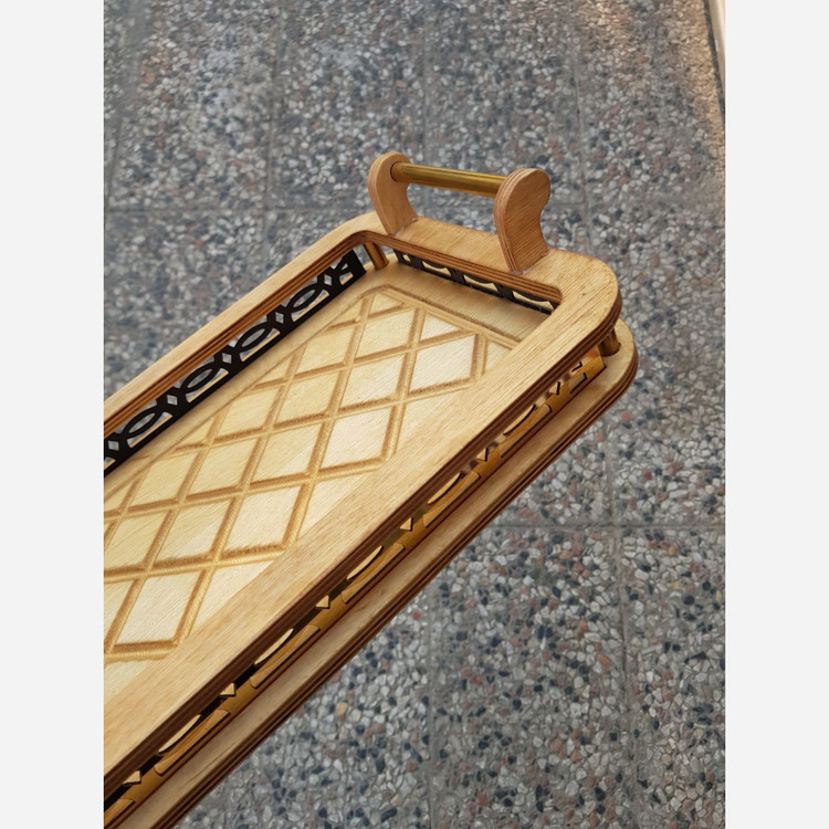 سینی چوبی مستطیل بزرگ دور طلایی دسته دار دسته فلزی کیفیت بالا ارسال فوری تا 30 بهمن پنجاه درصد تخفیف ویژه فقط تا پایان آذر