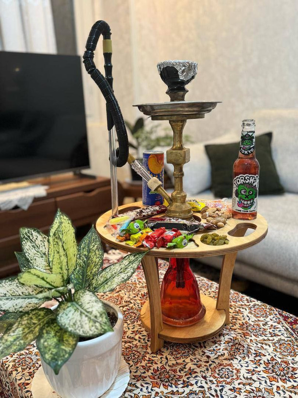 سینی قلیان قلیون چوبی گرد پایه دار کیفیت بالا چوب خالص ارسال فوری پنجاه 50 درصد تخفیف تا 30 همن