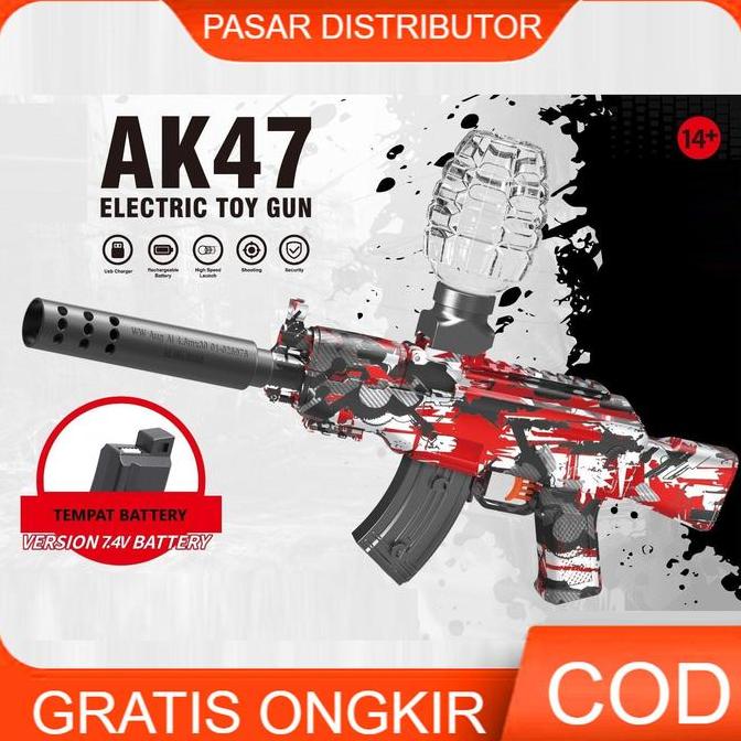 تفنگ تیر ژله ای رگباری Ak47 شارژی فلش دارر و ساده کیفیت بالا ارسال فوری