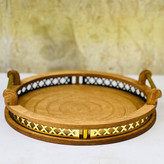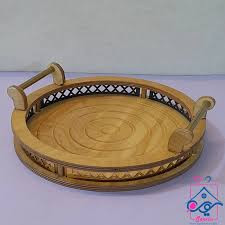 سینی چوبی مدل حاشیه نرده طلایی و چوبی بزرگ چوب خالص وارداتی ارسال فوری کد333