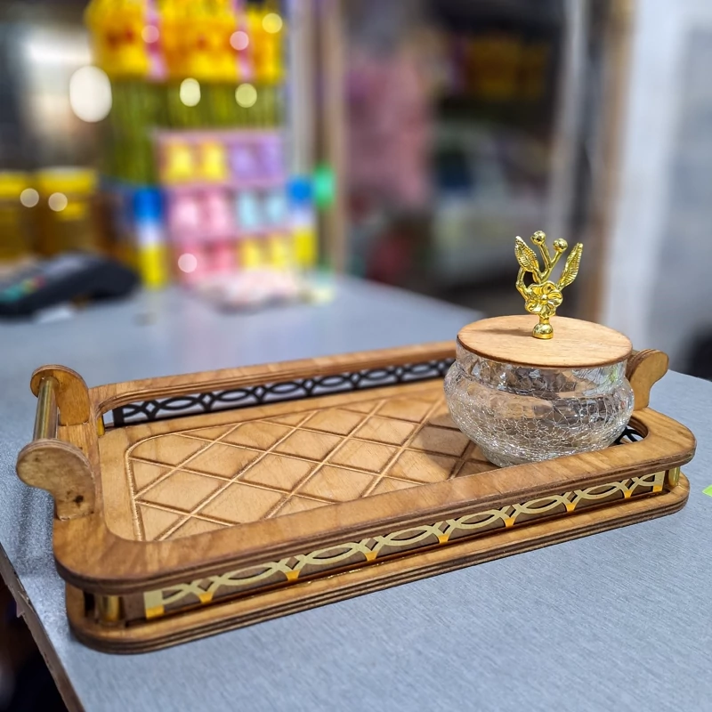 سینی چوبی دسته طلایی دوره دار در دو مدل گرد ومستطیل
