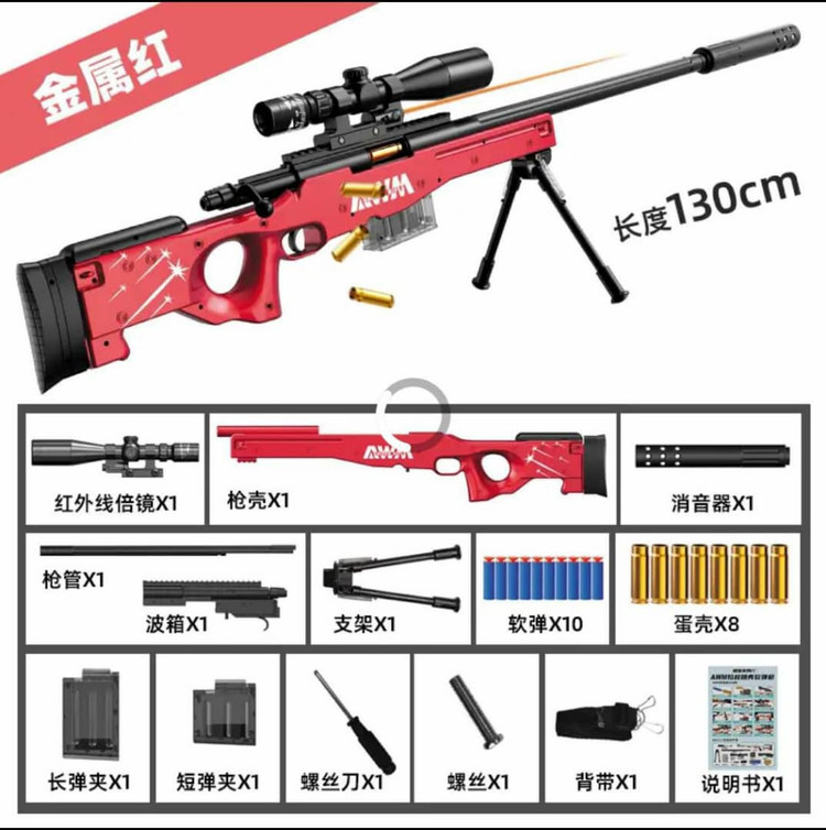 تفنگ تک تیر انداز استایپر دوربین دار لیزری 130 سانتی متری اصلی پوکه پران با وسایل کامل { ارسال رایگان } کد 487